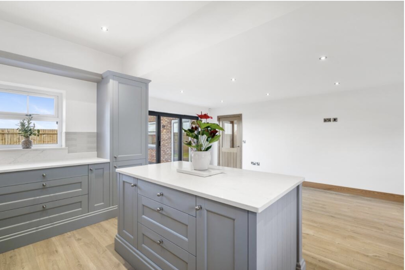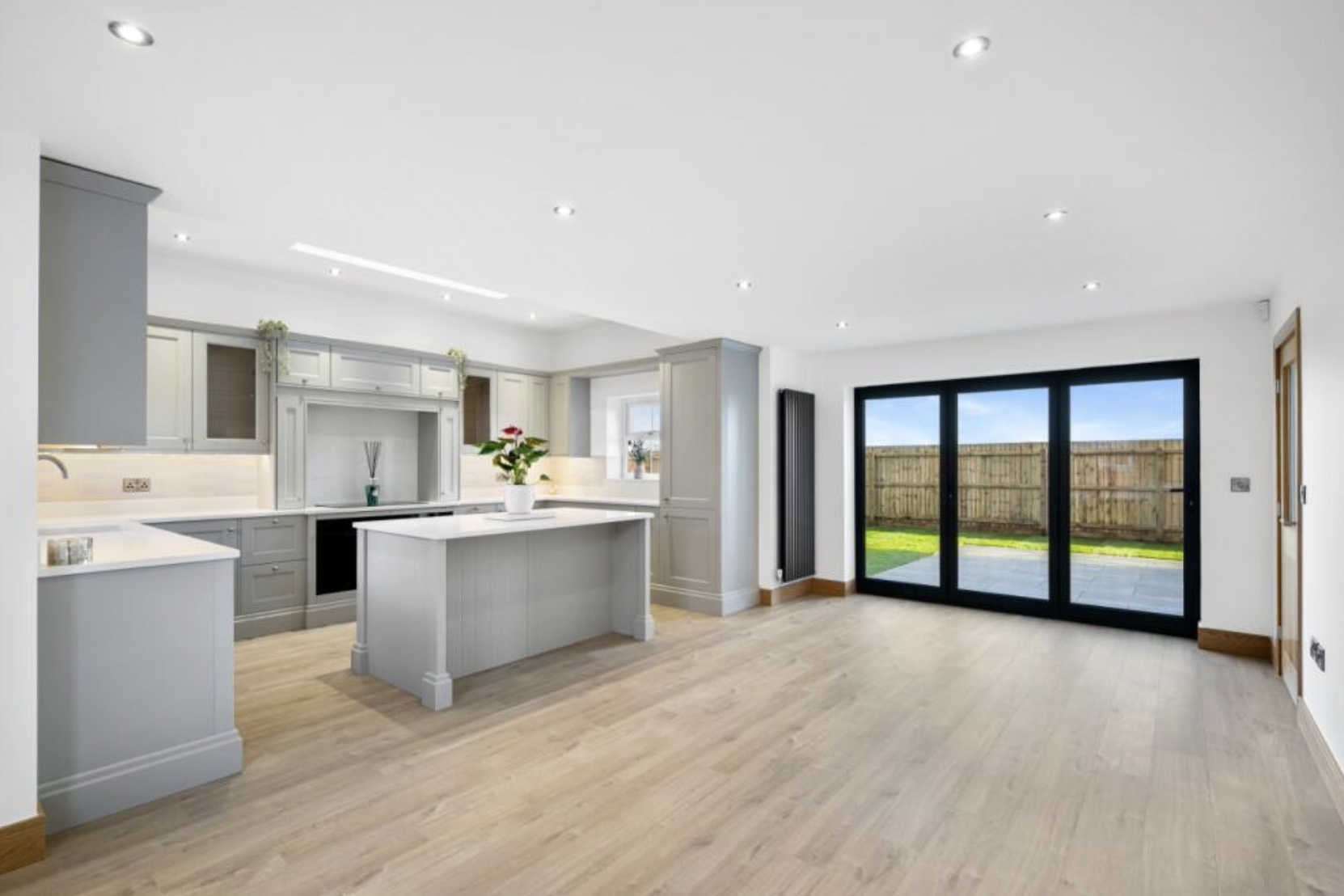 Internally, the home is finished to a high standard throughout with an eye-catching open-plan kitchen/dining room, equipped with premium appliances, quartz worktops, and bi-fold access to the garden. The home also comes with a spacious utility room, with an external access door out to the side of the property. The lower floor of the house contains a versatile range of spaces: a generous lounge, a study/sitting room and a downstairs WC- all of which are perfect for entertaining.